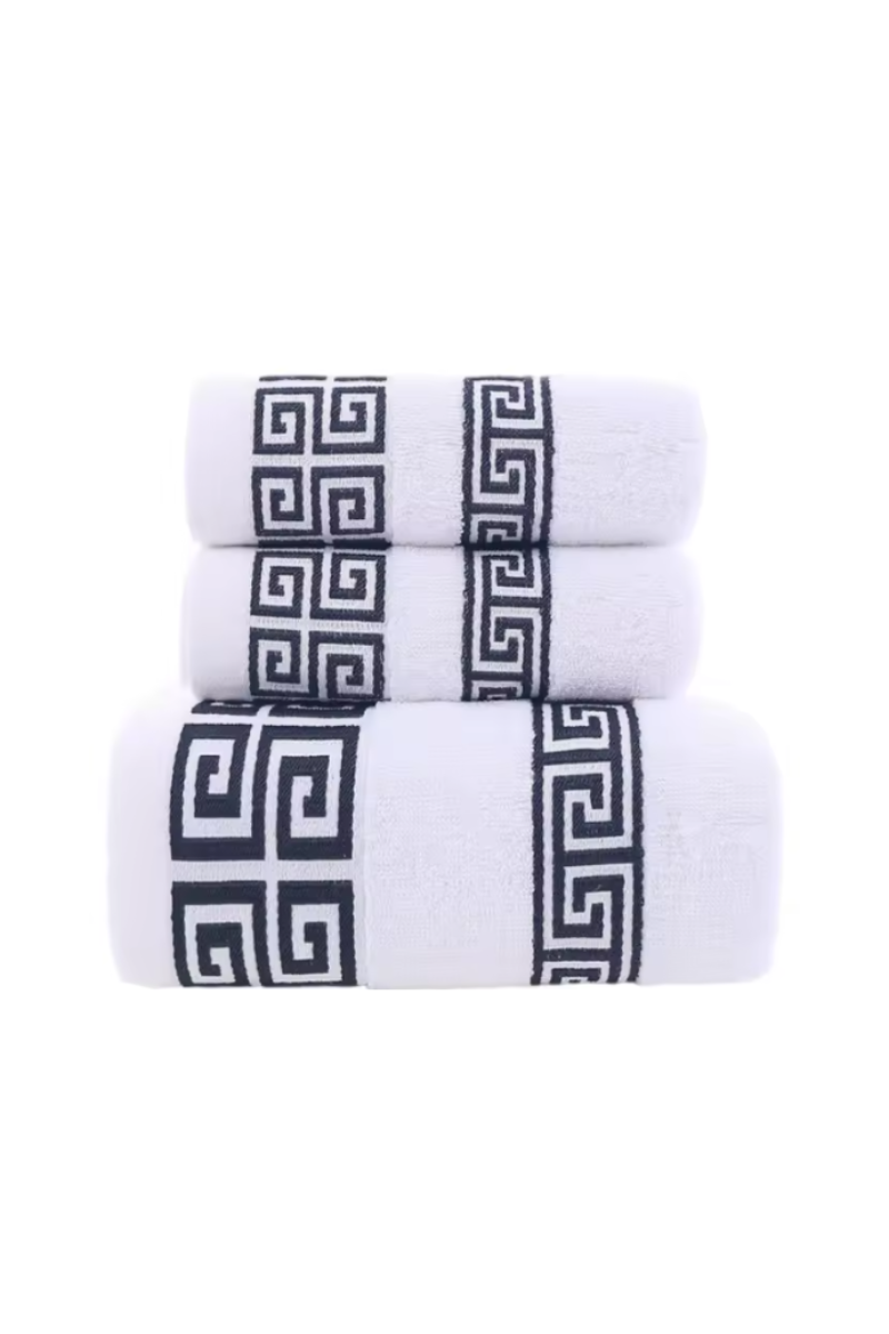 De VitaDeLuxe Badhanddoeken Set (3 stuks) brengt een vleugje elegantie en comfort in jouw badkamer. Deze set bestaat uit drie hoogwaardige handdoeken in stijlvolle kleuren met een chique, geweven patroon, waardoor ze niet alleen heerlijk zacht aanvoelen maar ook een echte eyecatcher zijn. Perfect voor dagelijks gebruik of om je gasten te verwennen met een luxe hotelgevoel in huis!